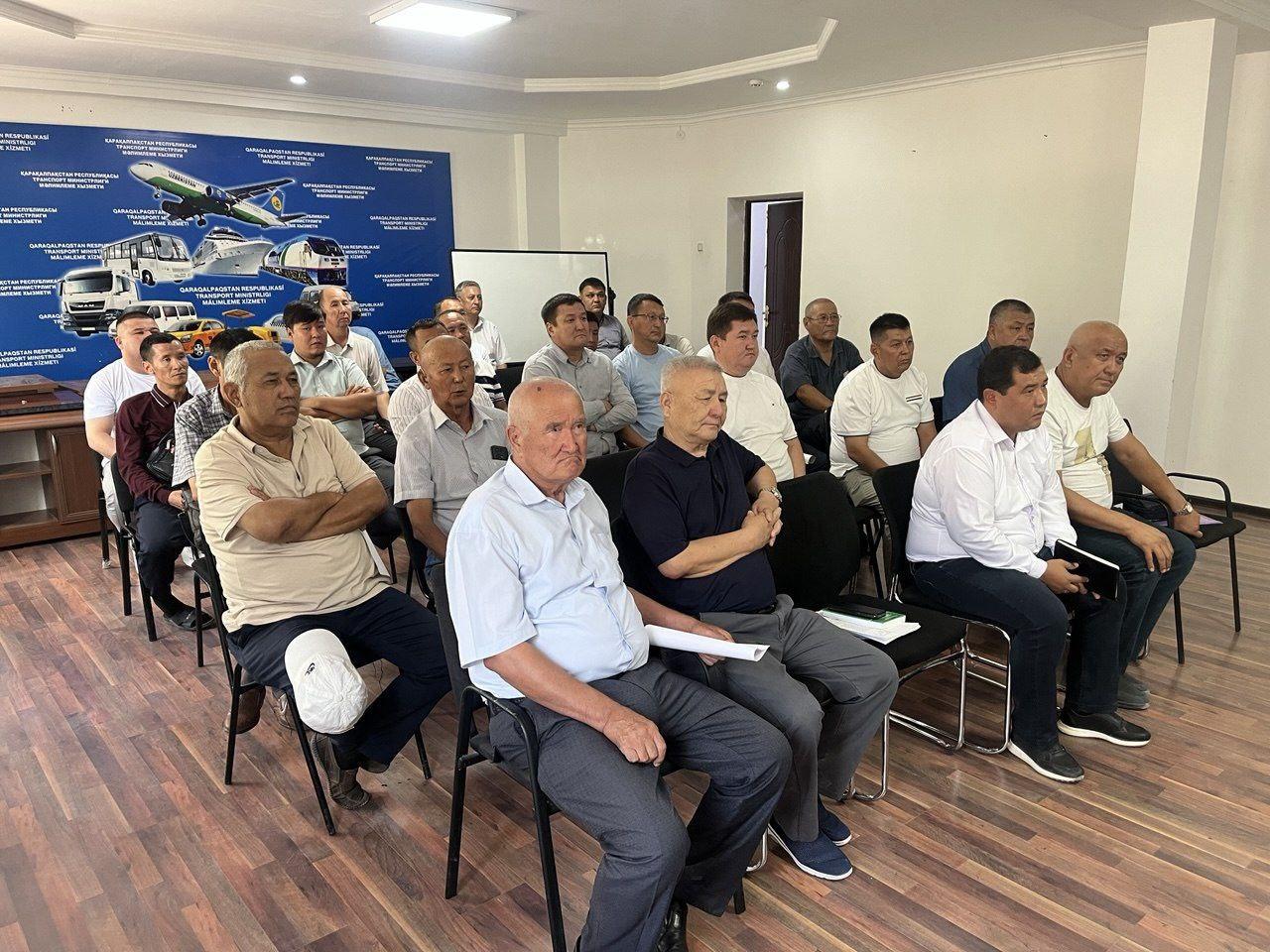 Aralboyı transport prokurorı D.Madenov, Qaraqalpaqstan Respublikası prokuraturası bólim baslıǵı A.Ibragimov, Qaraqalpaqstan Respublikası Transport ministri P.Kaypbekov, jolawshı tasıwshı kárxana basshıları hám basqa da juwapker xızmetkerlerdiń qatnasıwında tarawda alıp ...