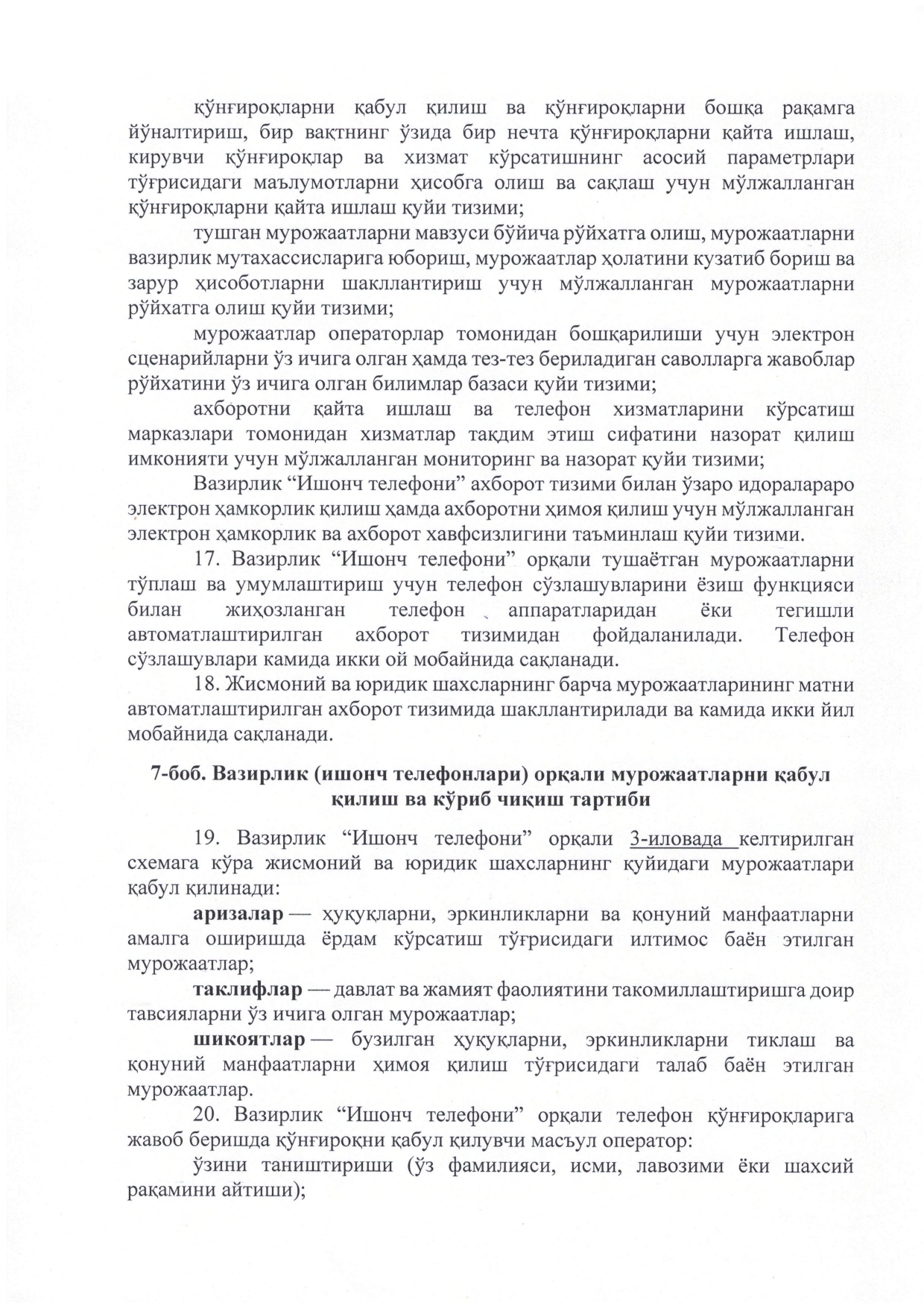 Регламент телефона доверия